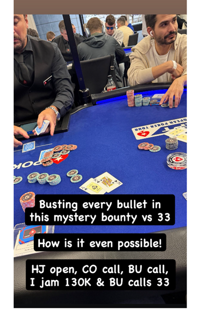 On Day 7, Jon had the opportunity to play the popular €3250 Mystery Bounty tournament.