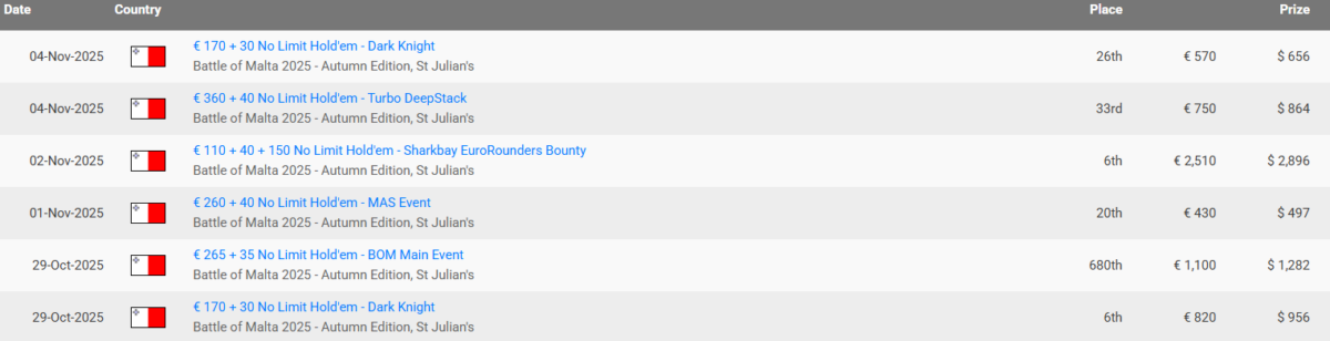 Tomi came to Malta with over $60,000 in recorded live poker tournament prizes, which included a final table appearence in the 2023 Kings of Tallinn – Summer Showdown Main Event, and a recent win at the WSOPC Tallinn.