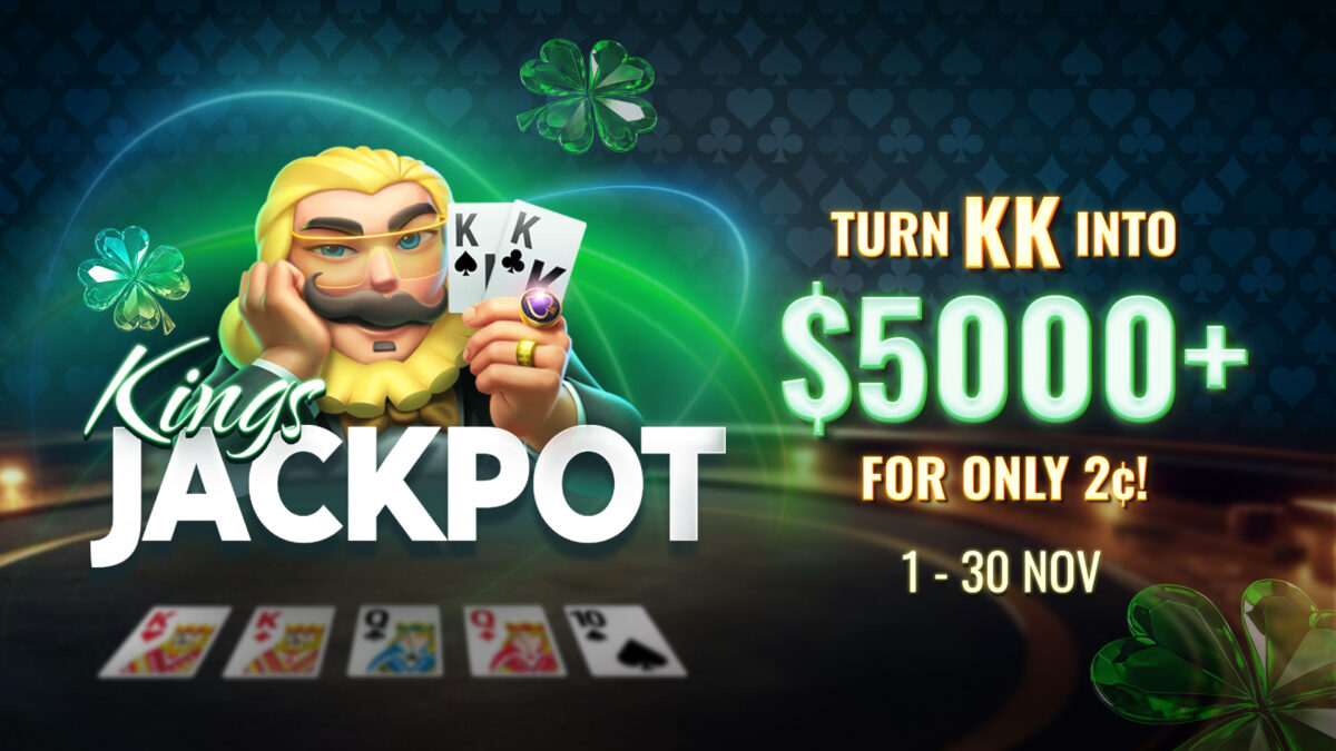 The main Kings Jackpot will begin at $5,000 and increase! If the main Kings Jackpot prize falls below $1,000, KKPoker will top it up to $1,000 for the winner!